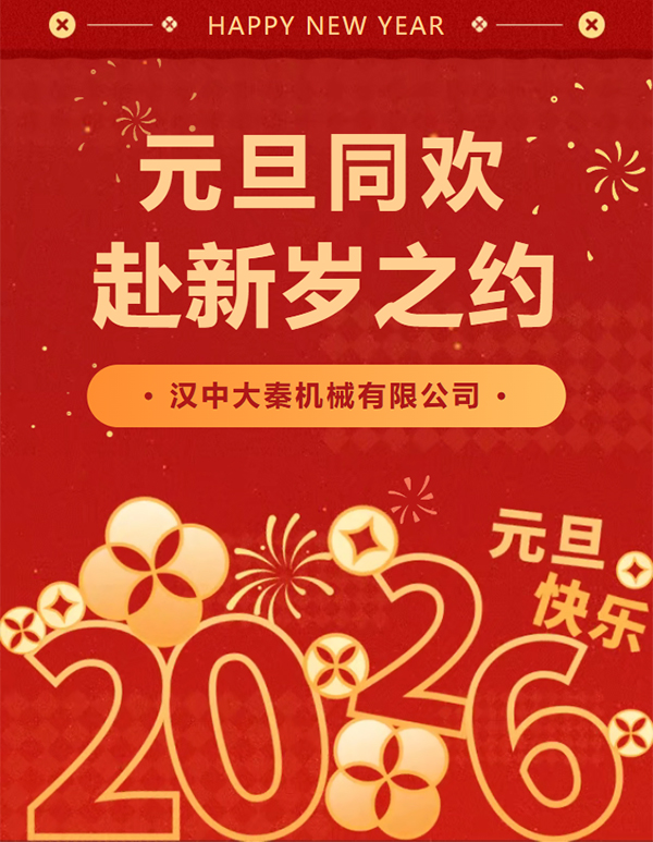 歲啟新元,福伴安康。值此2026年元旦佳節(jié),漢中大秦機械有限公司向所有合作伙伴、各界朋友致以誠摯祝福!